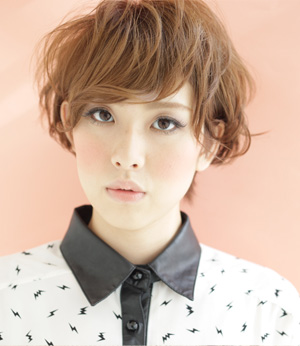 小顔にみせるためにパーマを毛先にゆるくかけ、カラーは、ツヤがでるピンクベージュで!!