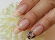 ピンクベージュの肌なじみの良いフレンチに、1本マーブルでアクセント。そしてラメラインで華やかさをプラス。マーブルがポイントとなってとってもcute♪
