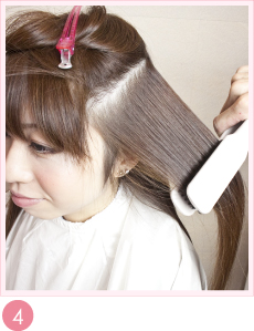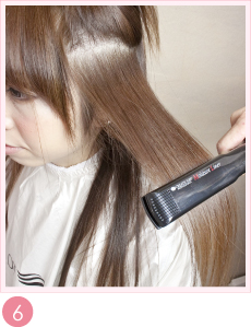 ブラシで伸ばした後、かるくアイロンをします。