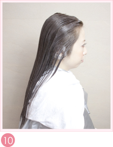 ストレートを固定するためのトリートメントをつけた状態です。